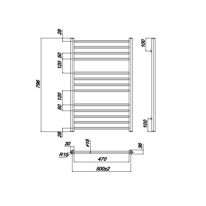 Ravak Полотенцесушитель Водяной Norma 500 x 800_W