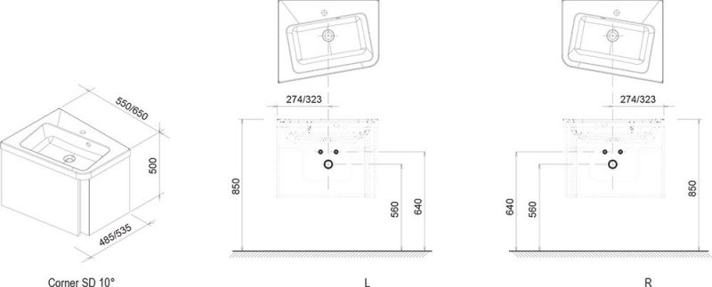Ravak Тумба под умывальник SD 10° 650 R серая купить