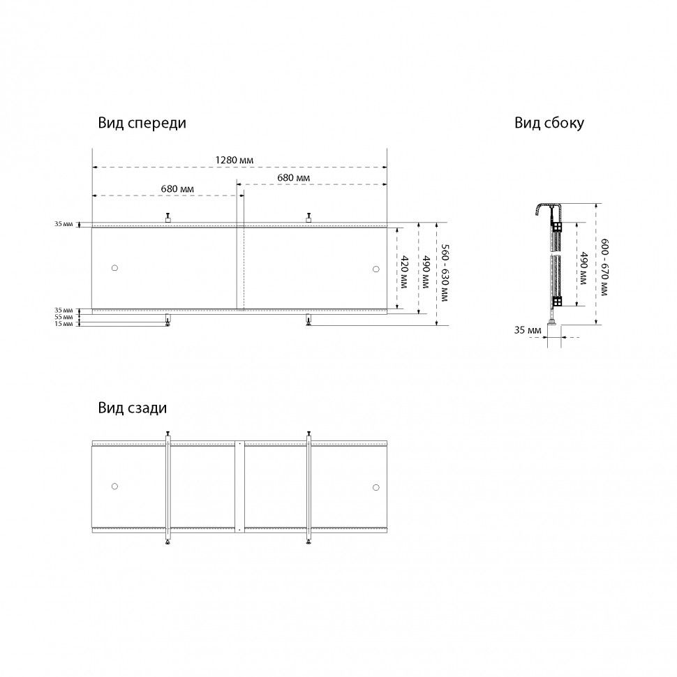Раздвижной экран для ванны Triton Щ0000067566 128 см