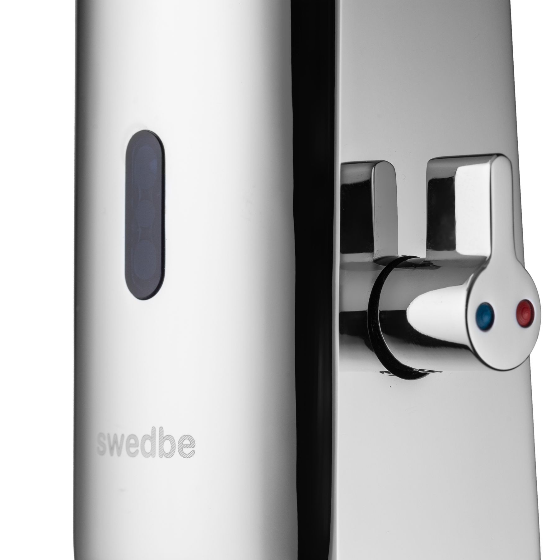 Бесконтактный смеситель для раковины Swedbe Europe демонстрирует новаторское решение в линейке сенсорных смесителей — ручную регулировку температуры воды. Нововведение шведского производителя приблизило эту модель к возможностям классического смесителя, сохранив при этом основные преимущества сенсора — гигиеничность и экономичность. Подключение воды к смесителю производится с помощью гибкой подводки SoftPEXХ, созданной по технологии молекулярно-сшитого полиэтилена. Этот материал в современном производстве труб является самым популярным за счёт гибкости, хорошей шумоизоляции и длительного срока службы (не менее 50 лет).
