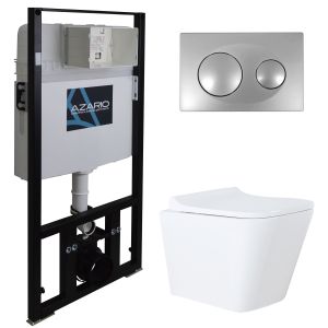 Сет AZARIO Teramo инсталляция + унитаз (квадратный) с быстросъемным сидением микролифт + клавиша смыва хром глянцевый