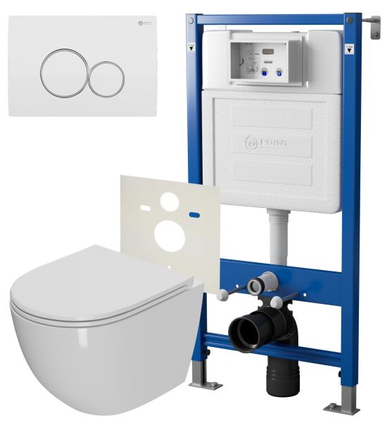 Сет: Система инсталляции Point Элемент для подвесного унитаза PN45120 + Клавиша смыва для инсталляции Point Виктория, белая/хром, PN44061WC + Унитаз подвесной Point Афина безободковый, сиденье микролифт PN41041