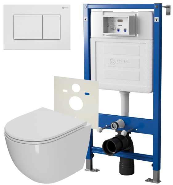 Сет: Система инсталляции Point Элемент для подвесного унитаза PN45120 + Клавиша смыва для инсталляции Point Ника, белая, PN44081W + Унитаз подвесной Point Афина безободковый, сиденье микролифт PN41041
