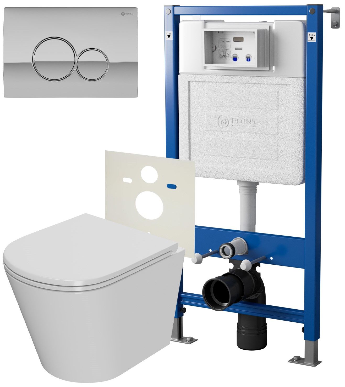 Сет: Система инсталляции Point Элемент для подвесного унитаза PN45120 + Клавиша смыва для инсталляции Point Виктория, хром, PN44061C + Унитаз подвесной Point Виктория безободковый, сиденье микролифт PN41061