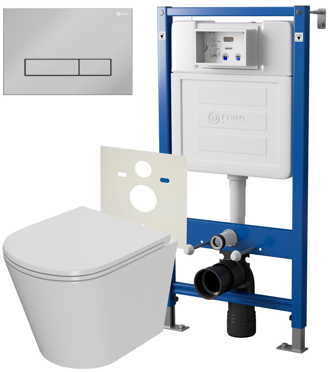 Сет: Система инсталляции Point Элемент для подвесного унитаза PN45120 + Клавиша смыва для инсталляции Point Меркурий, хром, PN44831C + Унитаз подвесной Point Виктория безободковый, сиденье микролифт PN41061
