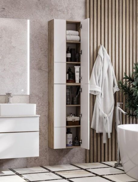 Шкаф Акватон Мишель дуб эндгрейн/белый не только роскошное украшение для ванной комнаты, но и превосходное функциональное решение любого санузла.Компания Акватон использует при производстве высококачественные водоотталкивающие материалы (ДСП), соответствующие всем необходимым требованиям безопасности. Коллекция Мишель выполнена в эксклюзивном дизайнерском решении в лучших традициях современного стиля. Белый, основной цвет исполнения Акватон Мишель, безупречно впишется в любой дизайн проект. Шкаф предусматривает удобную и вместительную систему хранения, состоящую из дверей с системой нажимного открывания. Ключевые габариты изделия: ширина 43 см, глубина 23 см, высота 101 см.Россия родина бренда Акватон, вся продукция производится со строгим соблюдением всех стандартов, благодаря чему можно быть абсолютно уверенным в надежности и высоком качестве. Шкаф Акватон Мишель дуб эндгрейн/белый создаст уют и комфорт в любом дизайнерском решении, и ванная комната обретет неповторимый элемент интерьера.