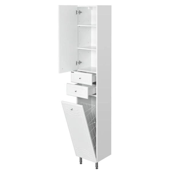 Шкаф-пенал Акватон Домус R великолепное решение для создания комфортной атмосферы в любой ванной комнате.В производстве используют только качественные влагостойкие материалы, в составе которых полностью отсутствуют опасные вещества. Коллекция Домус выполнена в эксклюзивном дизайнерском решении в лучших традициях современного стиля. Белый, основной цвет исполнения Акватон Домус, гармонирующий с большинством интерьерных решений. Шкаф-пенал предусматривает удобную и вместительную систему хранения, состоящую из дверей, ящиков. Важные габариты изделия: ширина 32.5 см, глубина 32.3 см, высота 202 см. Наличие бельевой корзины с вентилируемыми отверстиями позволит скрыть от посторонних глаз грязные вещи.Россия родина бренда Акватон, вся продукция производится со строгим соблюдением всех стандартов, благодаря чему можно быть абсолютно уверенным в надежности и высоком качестве. Шкаф-пенал Акватон Домус R создаст уют и комфорт в любом дизайнерском решении, и ванная комната обретет неповторимый элемент интерьера.