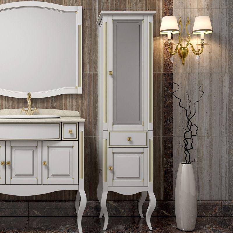 Шкаф-колонна Opadiris Лаура 44 R Z0000006524 Белый с золотой патиной ручки Swarovski Золото купить