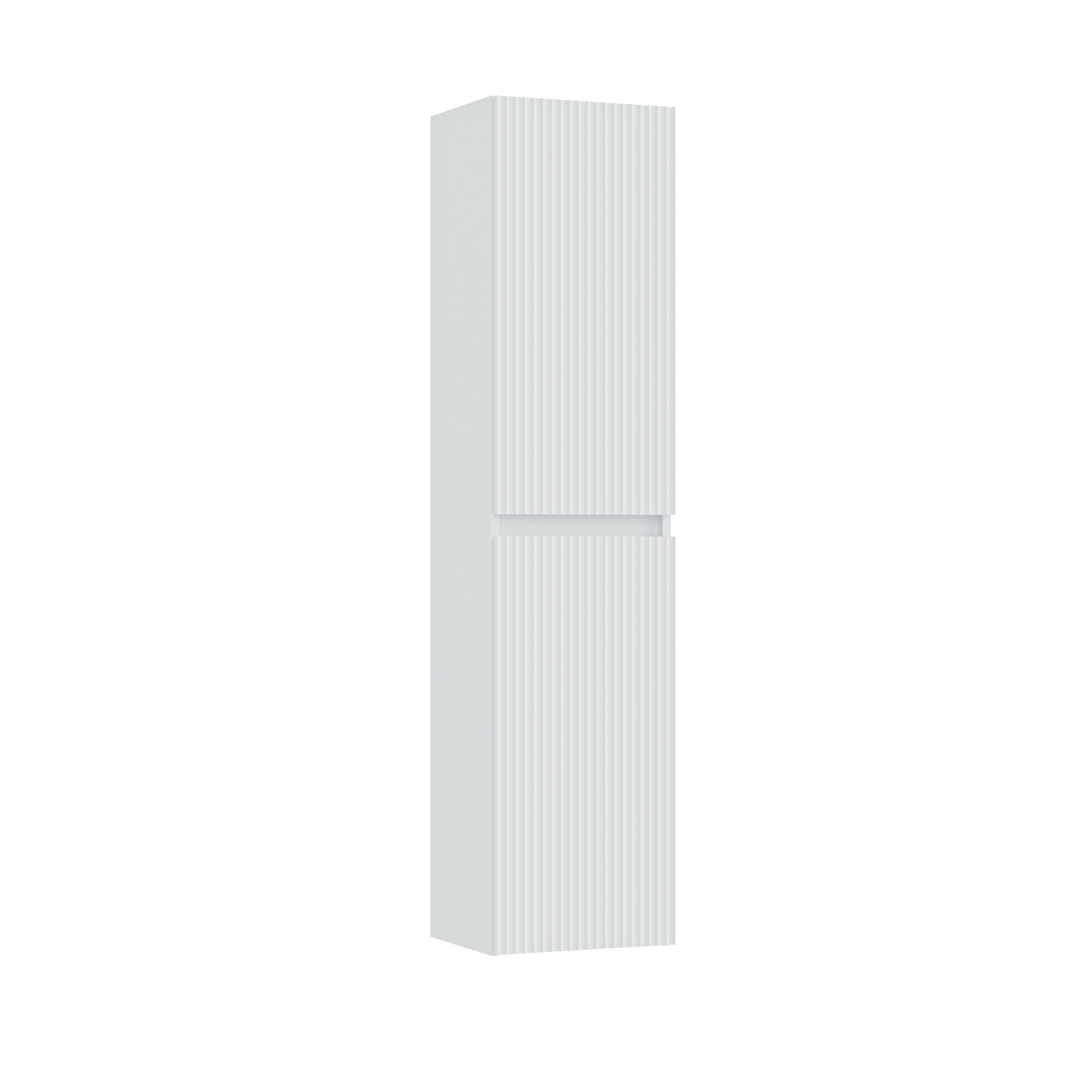 Шкаф пенал для ванной комнаты RUNO МОДЕНА (подвесной) – это изысканность и утончённая роскошь в интерьере. Волнистые рифленые фасады визуально «оживляют» и «приводят в движение» всю обстановку комнаты, сохраняя при этом умиротворение и покой. Цвет корпуса и фасада классический – белый глянец, идеально впишутся в любой интерьер ванной комнаты. Шкаф в ванную комнату оснащён двумя распашными дверцами, в каждом отделении по одной встроенной полке. Каждая дверца укомплектована двумя петлями, верхняя с доводчиком, нижняя без доводчика. Мебель для ванной RUNO - красота и практичность в мелочах, шкаф пенал для ванной комнаты Модена – лучший выбор для Вашей ванной комнаты!