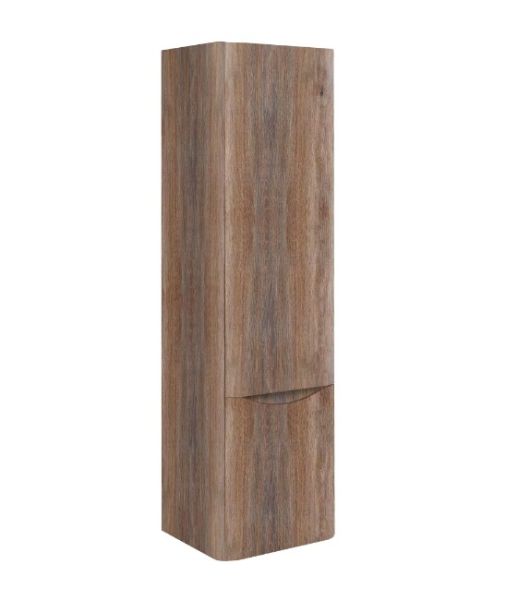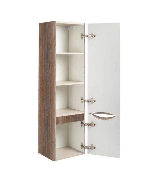 Шкаф пенал для ванной комнаты Runo Тоскана (подвесной) - выполнена в ультрасовременном дизайне в цвете темное дерево. Пенал отличается изысканным дизайном, скруглённые углы, древесная текстура фасада, врезная ручка – придают шкафу необычный и незабываемый внешний вид. Шкаф в ванную комнату оснащён двумя распашными дверцами, в верхнем отделении две встроенные полки. Каждая дверца укомплектована двумя петлями, верхняя с доводчиком, нижняя без доводчика. Мебель для ванной RUNO - красота и практичность в мелочах!