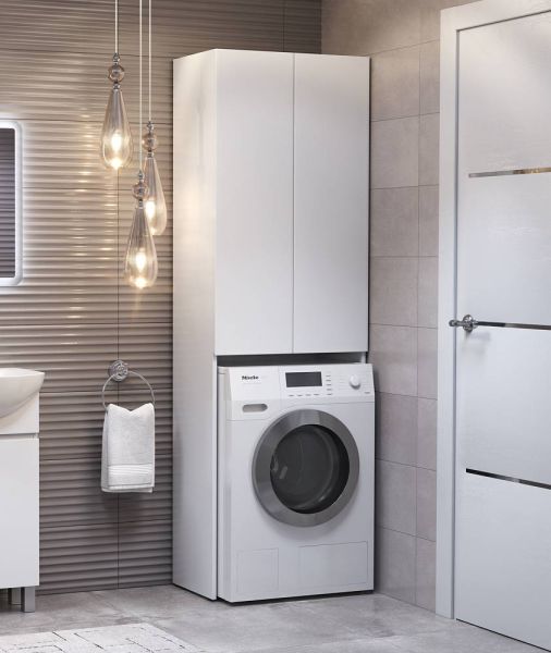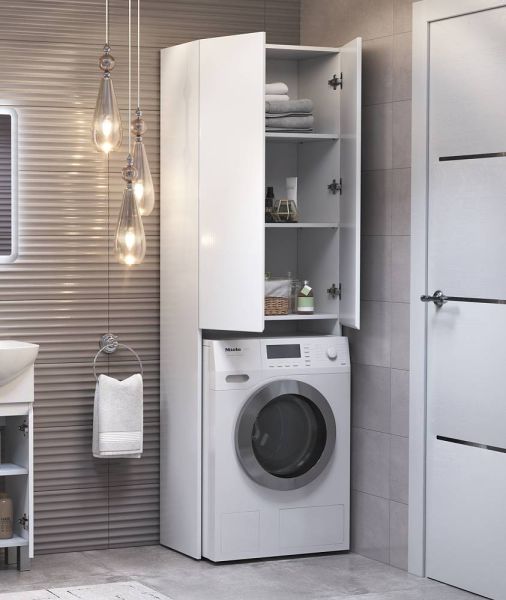 Шкафы Wing – идеальное решение, позволяющее сэкономить пространство ванной комнаты за счет размещения над стиральной машиной