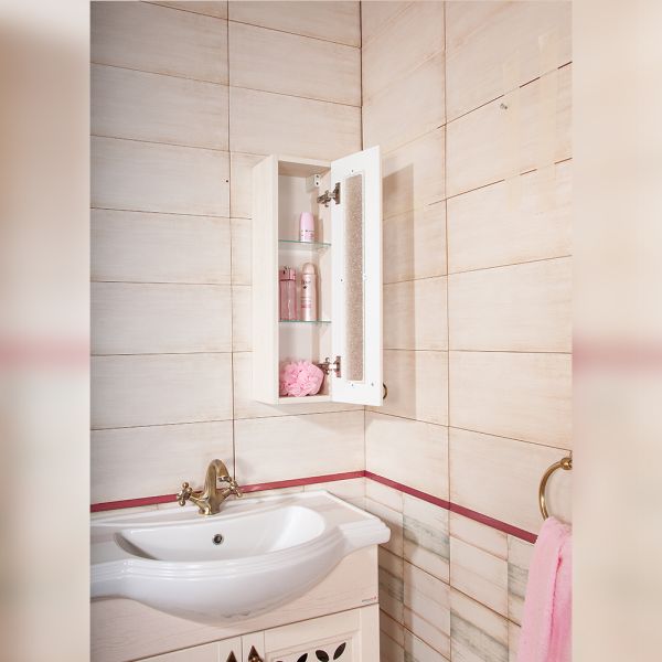 Основное преимущество шкаф заключается в его вместительности. Удобные полки и ящики позволяют организовать пространство и разместить все необходимое: от косметики до бытовых принадлежностей. Каждая деталь продумана для удобства использования, что делает утренние и вечерние ритуалы более приятными.