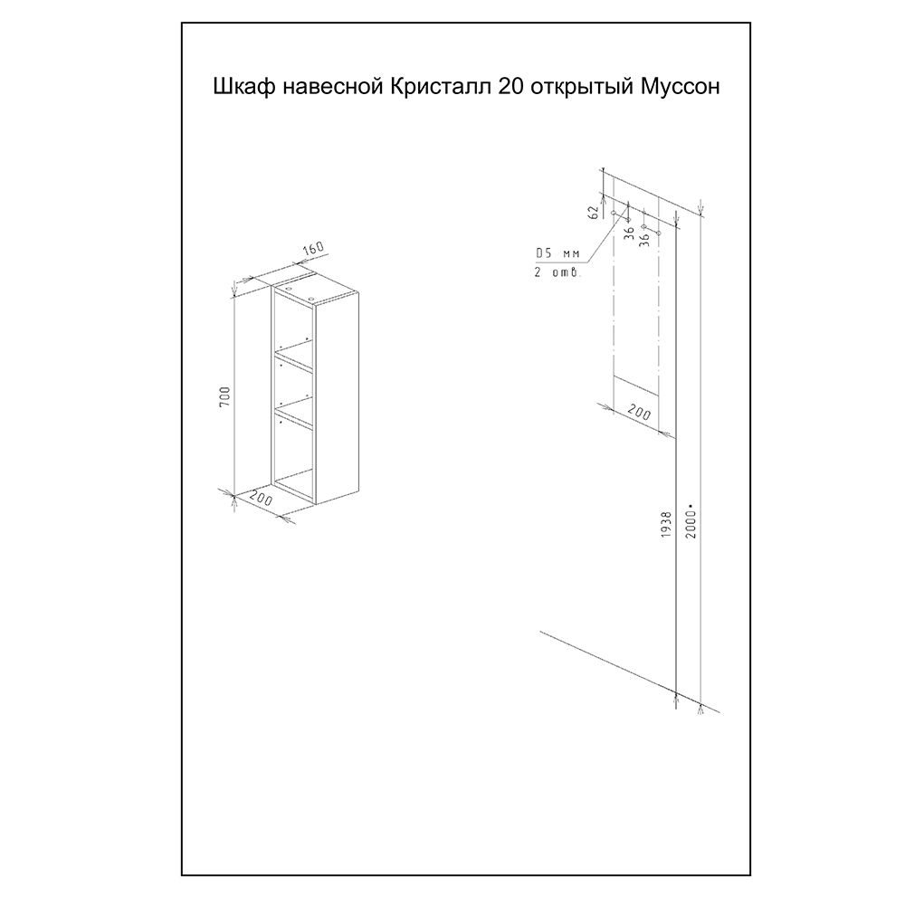 Шкаф навесной открытый Бриклаер Кристалл 4627125417016 20 см дуб крафт табачный купить