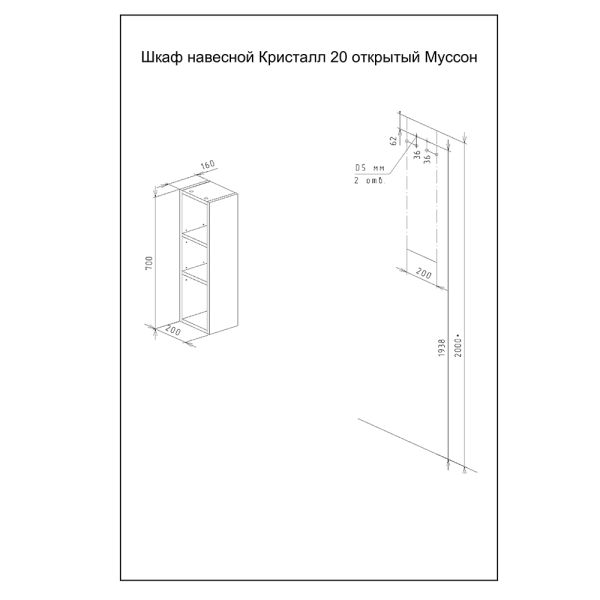 Шкаф навесной открытый Бриклаер Кристалл 4627125417016 20 см дуб крафт табачный