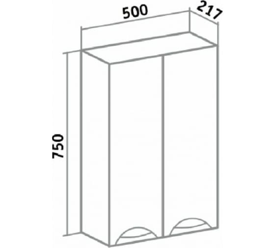 Шкаф навесной с двумя распашными фасадами. Внутри - две встроенные полки. Петли со встроенным доводчиком, ручки врезные - 2шт, навесы 2шт.