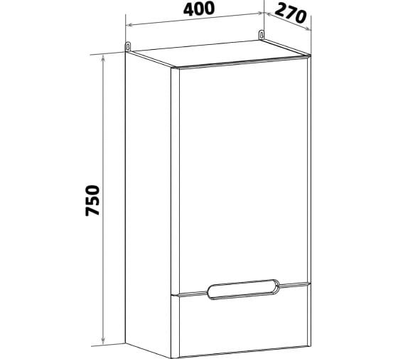 Шкаф навесной с одной дверкой и нижним выдвижным ящиком. За дверкой - одна внутренняя полка. Петли со встроенным доводчиком, ящик на шариковых направляющих полного выдвижения. Выпускается только в правом исполнении.
