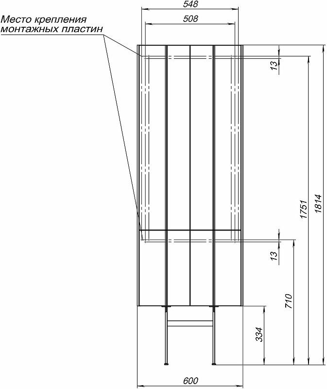 Размеры (ШхВхГ): 600х1480х310мм.