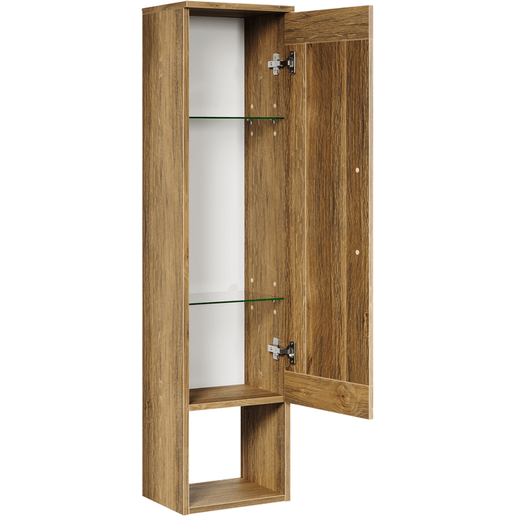 Шкаф-пенал Aqwella Craft CRF0503DB подвесной 30 смУниверсальный левый/правый подвесной пенал 35 см с одной дверью и открытой полкой, цвет дуб балтийский