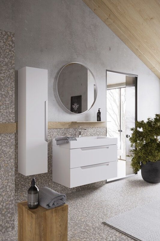 Коллекция мебели Cube – это строгие линии мебели для современных интерьеров, подчёркнутые искусным исполнением. Подвесные гарнитуры Cube поставляются в размерах 70 и 90 см. Доступные цвета мебели – белый и серый. Финальный слой лака – матовый.