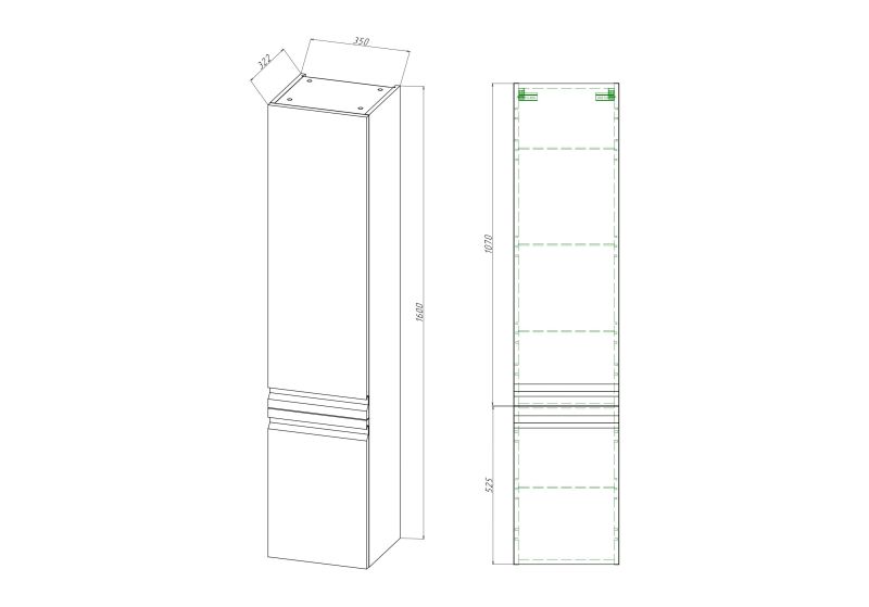 Габариты (Д В Ш), мм: 350*1600*322Материал корпуса: ЛДСП 16мм Эггер с последующей покраской в 5 слоевМатериал фасада: ЛМДФ 22мм Эггер с последующей покраской в 5 слоевМонтаж: подвеснойРасположение петель: слеваЧетыре стеклянные полочки, одна полочка ЛДСП.Петли с мягким закрываниемНавесы усиленные (100кг/пара)Мебель поставляется в собранном видеГарантия: 2 года