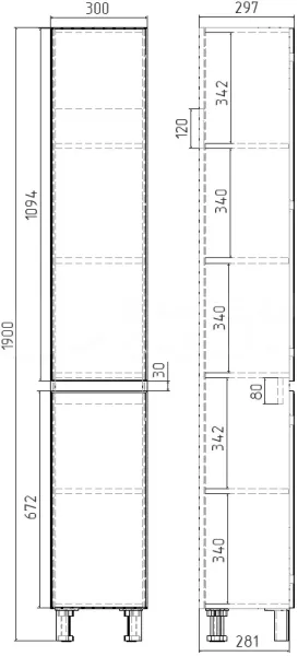 Шкаф-пенал для ванной VIANT Мальта белый, дуб вотан