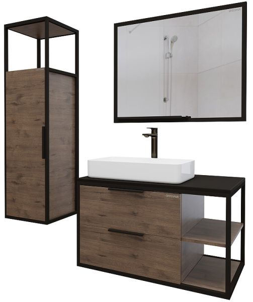 Корпус шкафа влагостойкий, выполнен из ЛДСП, фасад - из МДФ в пленке, устойчивых к механическим воздействиям, перепадам температур и высокой влажности.