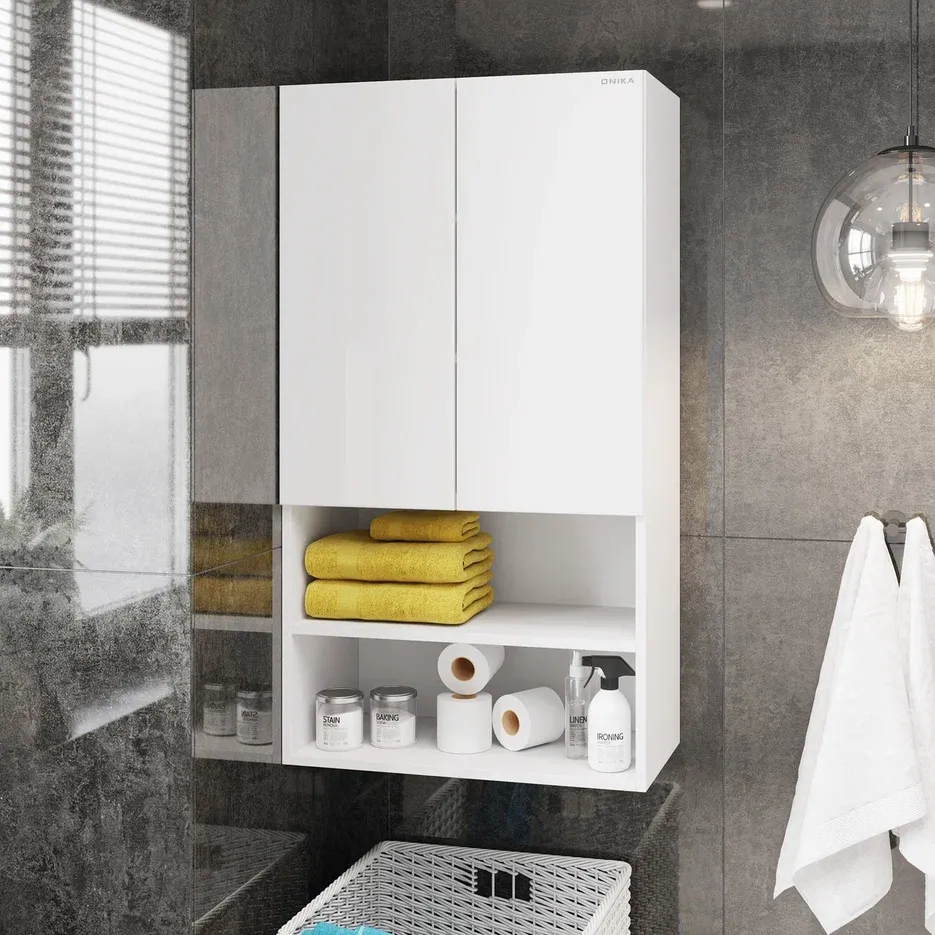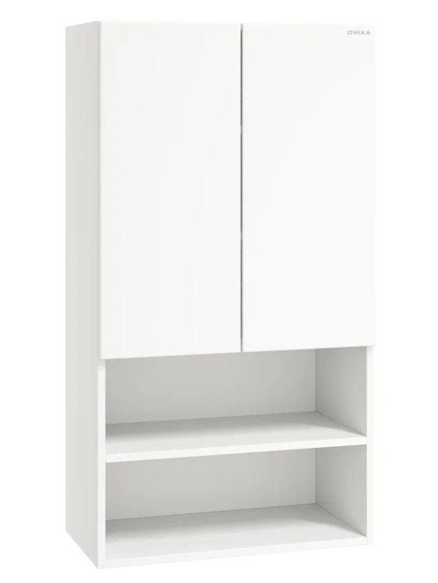 Навесной шкаф для ванной комнаты Onika Маркус 60, благодаря лаконичной прямоугольной форме и универсальному белому цвету, подойдет к любому интерьеру ванной комнаты и не займет много места.