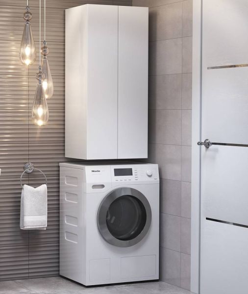 Шкафы Wing – идеальное решение, позволяющее сэкономить пространство ванной комнаты за счет размещения над стиральной машиной