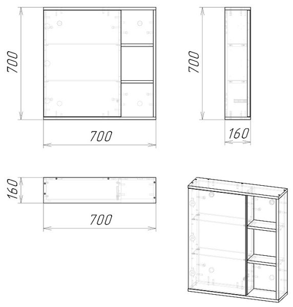 Зеркальный шкаф выполнен из влагостойкого ЛДСП, устойчивый к перепадам температур и высокой влажности.