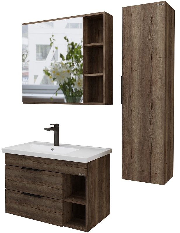 Шкаф-зеркало Форта 80 см - роскошная текстура и темный цвет дуба придают зеркалу сочетание современного дизайна.