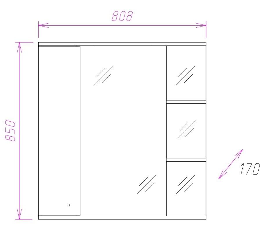 Шкаф-зеркало с подсветкой Onika Эльбрус 208022 правый 80см белый