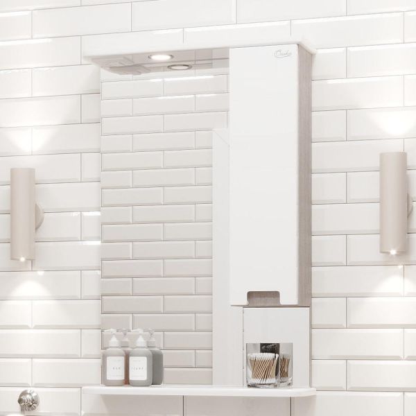 Шкаф-зеркало с подсветкой Onika Харпер 205216 правый 52см белый глянцевый купить