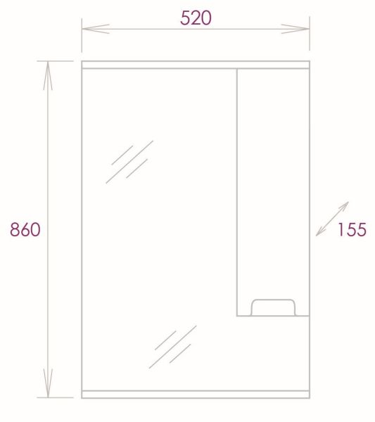 Современный функционал шкафа позволяет удобно расположить все необходимое: справа от зеркала за распашной дверцей с механизмом плавного закрывания расположено отделение для хранения, разделенное на две части горизонтальной полочкой, а под зеркалом - открытая полочка для косметических средств или декоративных элементов.