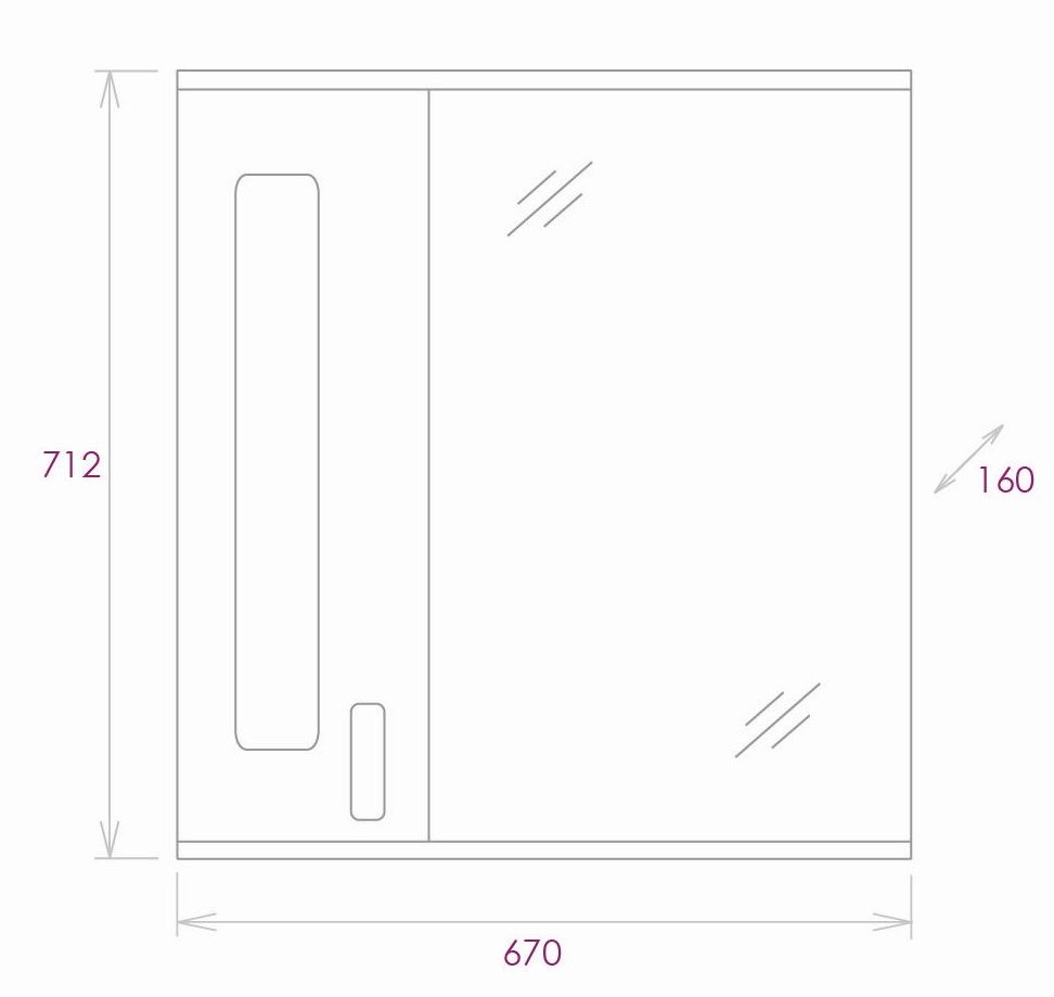 Корпус шкафа-зеркала выполнен из ЛДСП, фасад - из ЛМДФ в пленке, устойчивых к механическим воздействиям, перепадам температур и высокой влажности.