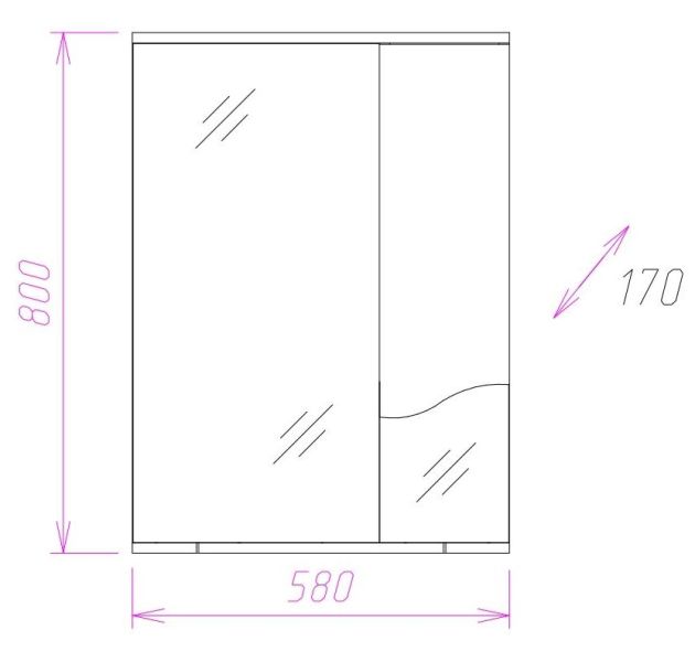 Корпус шкафа-зеркала выполнен из ЛДСП, фасад - из ЛМДФ в пленке, устойчивых к механическим воздействиям, перепадам температур и высокой влажности.