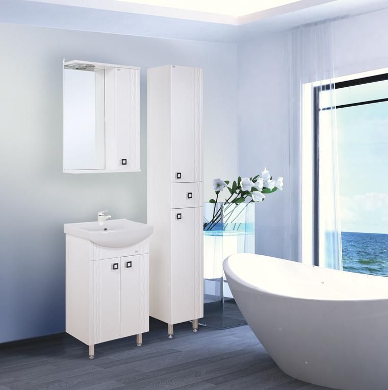Корпус шкафа-зеркала выполнен из ЛДСП, фасад - из ЛМДФ в пленке, устойчивых к механическим воздействиям, перепадам температур и высокой влажности.