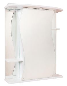 Навесной зеркальный шкаф ЛИЛИЯ 55 способен преобразить ванную комнату: эстетика изогнутой линии воплощается в мягкой волнообразной форме дверцы и исполняет роль основного выразительного элемента для интерьера помещения.