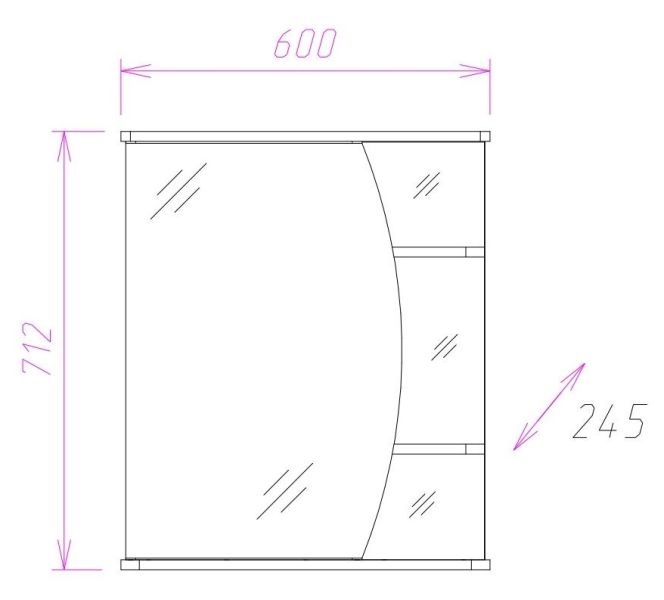 Корпус шкафа-зеркала выполнен из ЛДСП, фасад - из ЛДСП и ЛМДФ в пленке, устойчивых к механическим воздействиям, перепадам температур и высокой влажности.