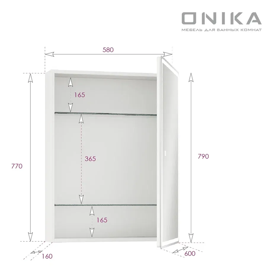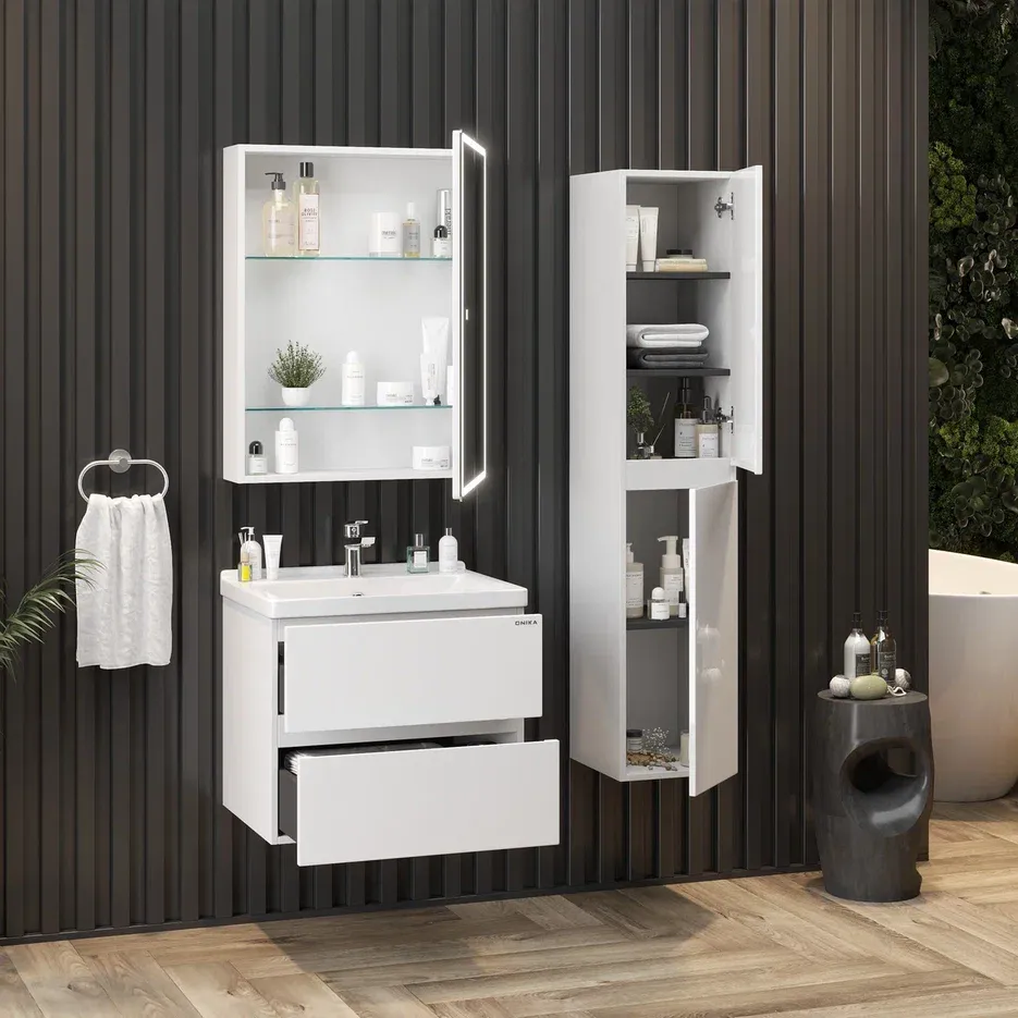 Зеркальный шкаф для ванной комнаты с подсветкой Onika Орби 60 прекрасно впишется в современный интерьер и повысит уровень комфорта ванной комнаты.