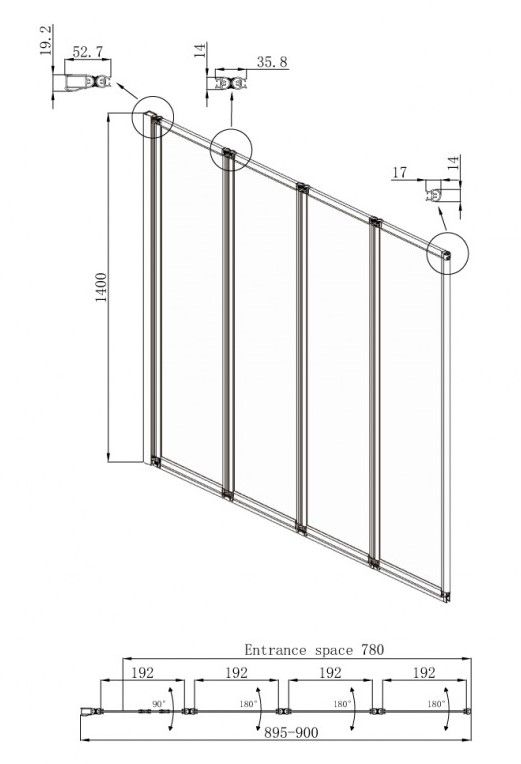 • Душевая шторка со складывающимися вовнутрь дверями