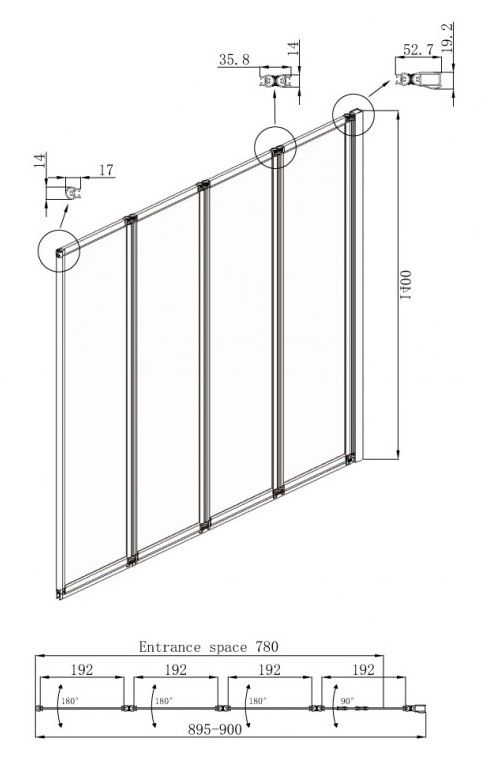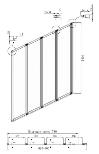 • Душевая шторка со складывающимися вовнутрь дверями