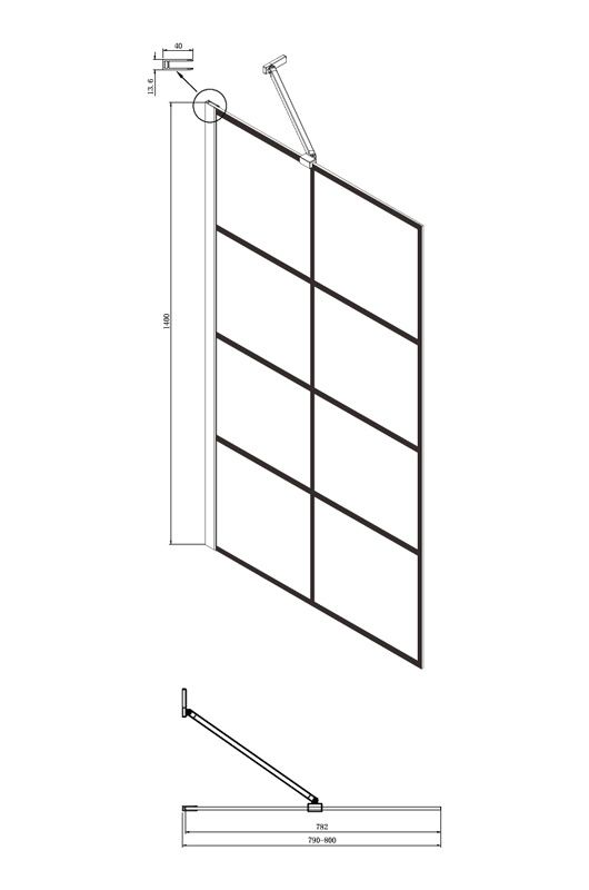 • Душевая шторка с неподвижной дверью