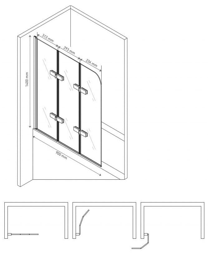 Шторка на ванну Berges City 2.0 90см хром 062013