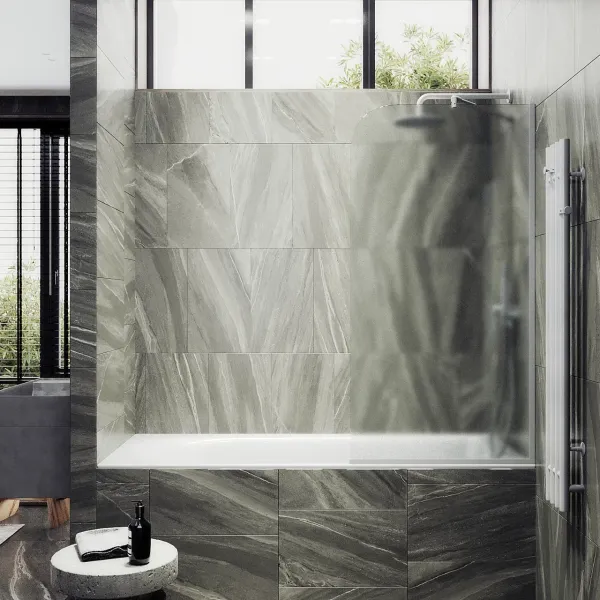 Монтаж осуществляется с помощью алюминиевого профиля, что обеспечивает надежность крепления и безопасность использования стеклянной перегородки для ванной. Также, шторка оснащена специальным уплотнителем, который предотвращает попадание воды на пол ванной комнаты. Закаленное стекло, цвет Сатин, толщина 6 мм 1400х740 мм - 1 шт.
