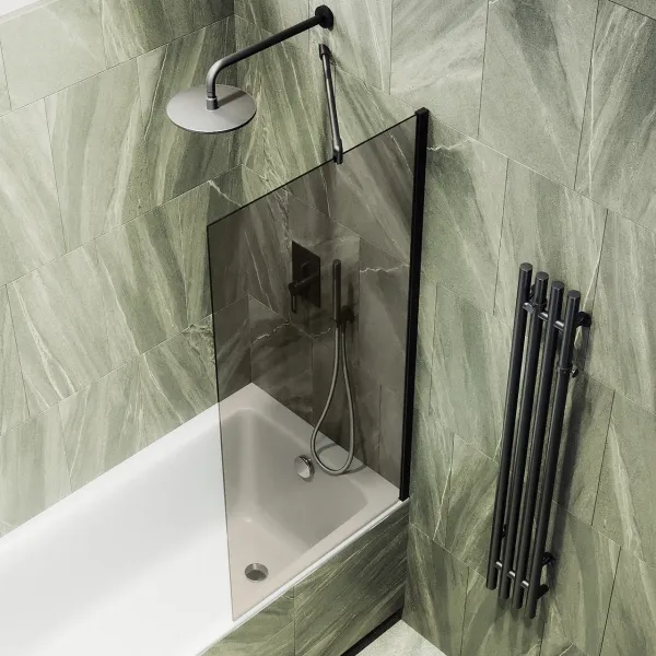 Монтаж осуществляется с помощью алюминиевого профиля, что обеспечивает надежность крепления и безопасность использования стеклянной перегородки для ванной. Также, шторка оснащена специальным уплотнителем, который предотвращает попадание воды на пол ванной комнаты.Закаленное стекло, цвет Бронза, толщина 8 мм 1400х300 мм - 1 шт.