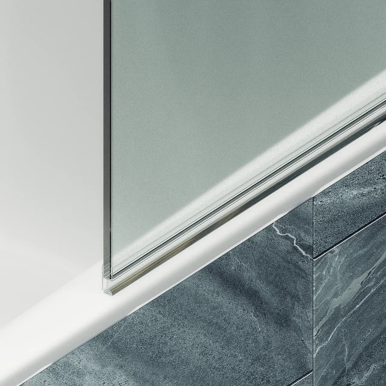 Монтаж осуществляется с помощью алюминиевого профиля, что обеспечивает надежность крепления и безопасность использования стеклянной перегородки для ванной. Также, шторка оснащена специальным уплотнителем, который предотвращает попадание воды на пол ванной комнаты, а также поворотным механизмом, что облегчает уход за сантехникой и делает использование ширмы максимально комфортным. Закаленное стекло, цвет Сатин, толщина 6 мм 1400х340 мм - 1 шт.