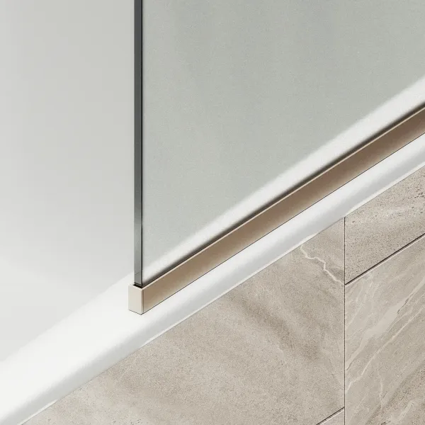 Монтаж осуществляется с помощью алюминиевого профиля, что обеспечивает надежность крепления и безопасность использования стеклянной перегородки для ванной. Также, шторка оснащена специальным уплотнителем, который предотвращает попадание воды на пол ванной комнаты. Закаленное стекло, цвет Сатин, толщина 8 мм 1400х700 мм - 1 шт.