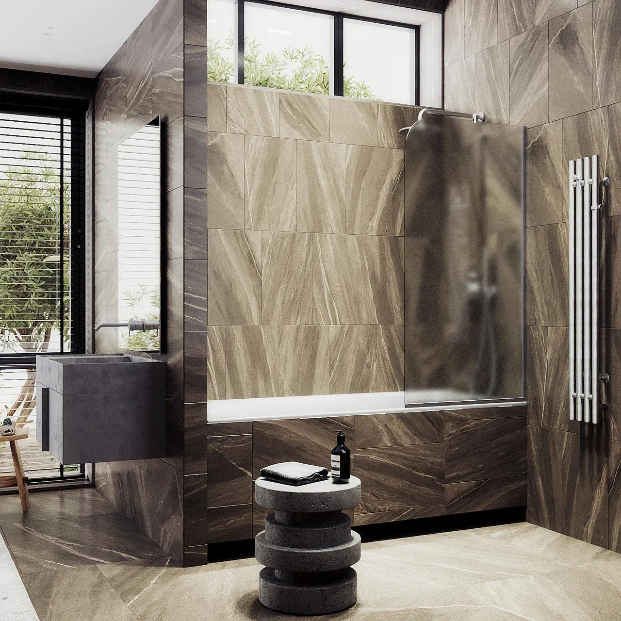 Монтаж осуществляется с помощью алюминиевого профиля, что обеспечивает надежность крепления и безопасность использования стеклянной перегородки для ванной. Также, шторка оснащена специальным уплотнителем, который предотвращает попадание воды на пол ванной комнаты. Закаленное стекло, цвет Сатин, толщина 8 мм 1400х800 мм - 1 шт.