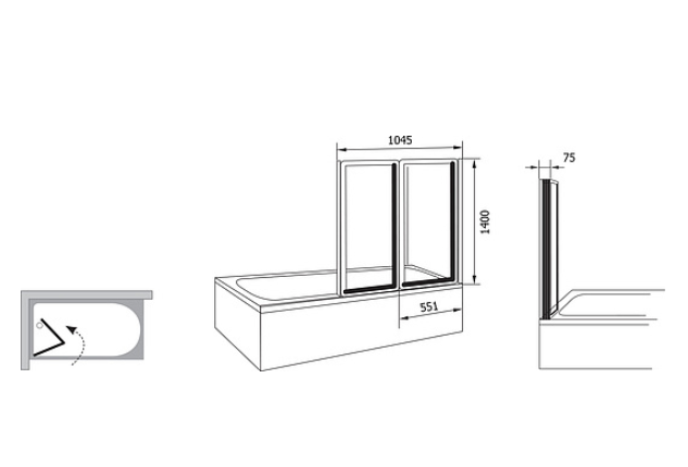 Две ее подвижные части можно вместе сложить вовнутрь ванны. Повернув крайнюю подвижную часть шторы вовнутрь ванны, можно создать еще более практичное душевое пространство.