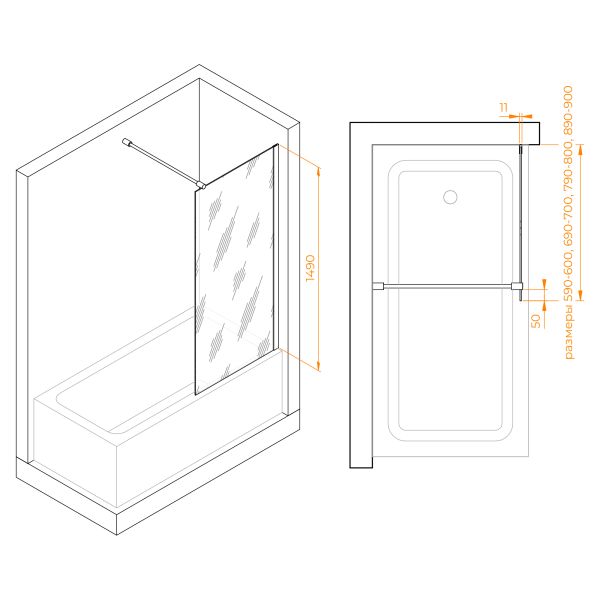 Шторка на ванну RGW SC-050 351105006-11 60см хром купить